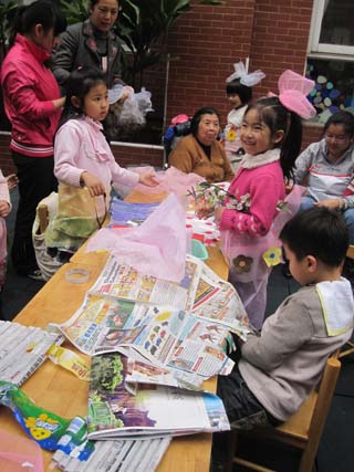最后,国际大班的环保时装秀更是把活动推向了高潮。听音乐响起,制作衣服的孩子们马上站在了T型台上,跟着节奏展示各自制作的衣服。活动时间结束了,孩子们和家长们依然意犹未尽。