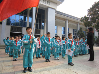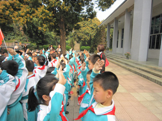 此时,鲜艳的红领巾在随风飘扬,相信新队员们在先烈面前,更懂得珍惜胸前这红旗的一角,努力去做一位优秀的少先队员。