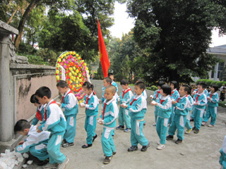 清明节前夕,碧桂花城学校一年级的全体师生乘坐着校巴,向西海抗日烈士陵园出发。