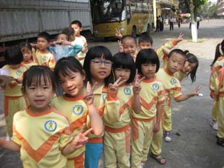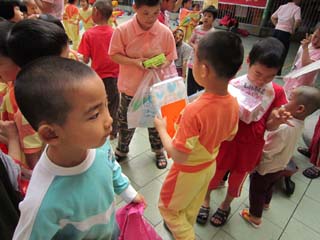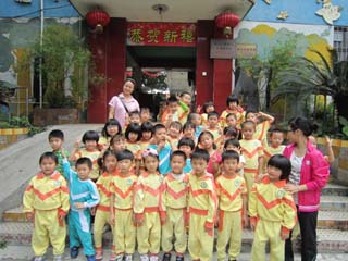 早上八点三十分,大班级组每班九个小代表共45名小朋友就整装出发了,我们前往的是位于顺德大良的一家福利院。
