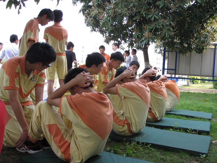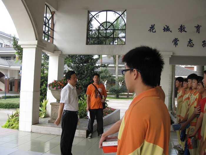 为了保证体育中考的顺利通过,贺校长做了大量的工作:考前指派体育教师罗老师赴教育局开会,熟悉场地和流程、明确评分标准;测试日,不仅安排全体毕业班教师、医护人员、保安人员陪同,更是亲自带队为考生们鼓劲助威。出发前,贺校用他激情澎湃的声音向同学们提要求――自信、放松、尽力、守纪;送祝福――心情像今天的天气一样晴朗,笑脸像今天的阳光一样灿烂。他的激情感染和鼓舞了即将奔赴考场的所有考生,够给力!