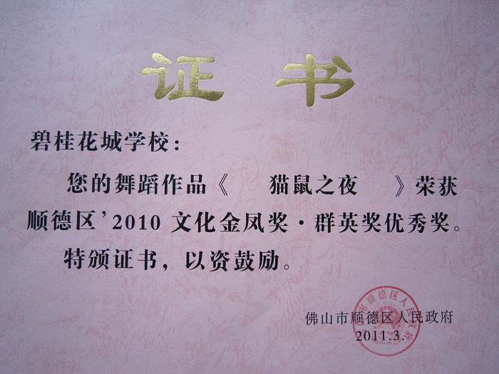 在刚刚结束的顺德区金凤奖评选活动中,我校朱嘉老师辅导的舞蹈《猫鼠之夜》,张峰老师的书法作品《圣教序》以及任锋波老师辅导的戏剧作品《白色噩梦》同时荣获群英奖优秀奖。特此祝贺!