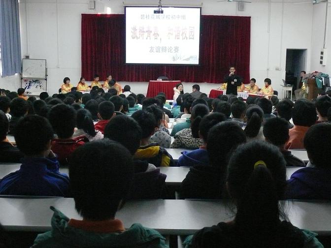 12月17日下午,碧桂花城学校“激辩青春,和谐校园”辩论赛决赛在阶梯教室精彩上演。智慧与才思的交锋,激情与勇气的碰撞,为全校师生奉献上了一餐视听的盛宴。
