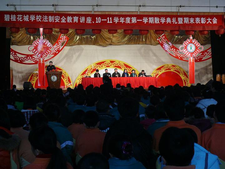首先,陈村镇的两名警官为同学们进行了专题法制和安全教育讲座,警官叔叔为全校师生上了一堂生动的法制、交通安全教育课,并祝愿同学们度过一个愉快、安全、有意义的寒假。
