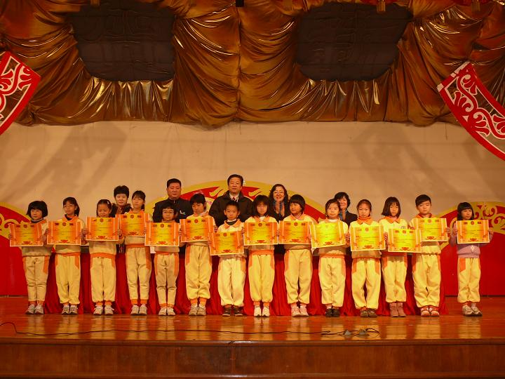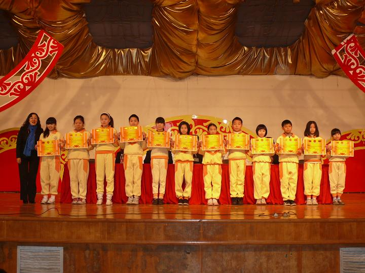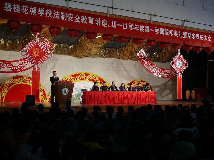 典礼的高潮部分是颁奖仪式,在壮美激昂的旋律中,贺校长、束校长、苏老师、谭主任和戴主任分别为各级各类获奖的同学进行了颁奖,对在本学期中表现突出的班级进行了表彰。