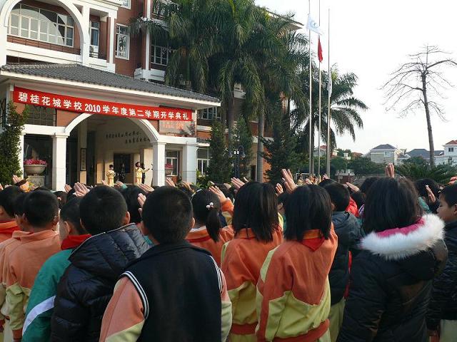 2月14日早上,南国的春天还渗着丝丝寒意。碧桂花城学校的全体师生精神抖擞,迎着初升的太阳,在操场上举行了新学期开学典礼。随着雄壮的音乐,鲜艳的五星红旗冉冉上升,携着新春的气息,构成了一幅朝气蓬勃的画面,预示着新的学期有个美好的开始。贺小勇校长致辞,他祝愿师生们在新学期身体健康,工作出色,学业进步。他还强调:春天意味着新的开始,要迎接新的挑战,创造新的辉煌。在春天里播种,在秋天里收获。希望大家好好把握这美好的春光,开一个好头。
