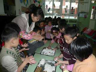 活动第三炮:包汤圆、吃汤圆。老师和幼儿一起做汤圆,品尝到自己的劳动成果,孩子们吃得津津有味,大家都说:好吃!真好吃!尽管汤圆有大有小,有圆有方,但孩子们吃在嘴里甜在心里,大家都感受到了节日的快乐。孩子在实践中对元宵节有了更深的认识,也在轻松的氛围中培养了孩子的动手能力。