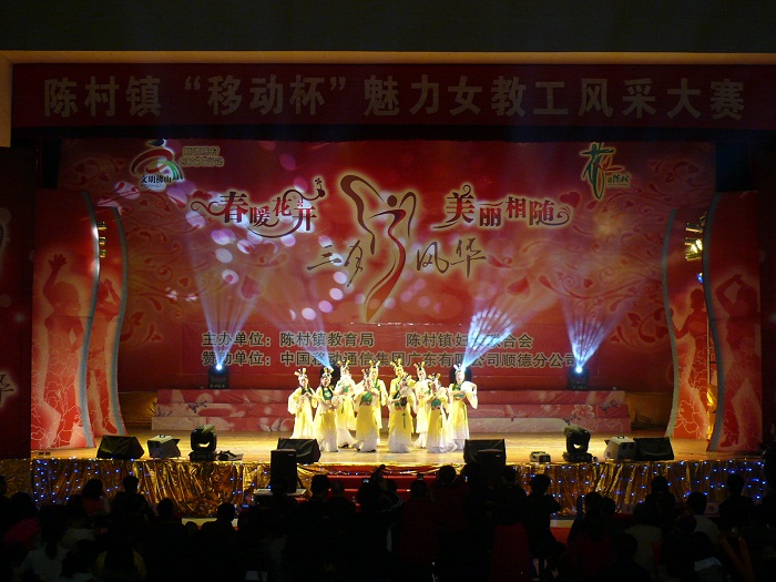 2011年3月2日晚,陈村职业技术学校体育馆座无虚席,陈村镇“庆三八――魅力女教工风采大赛”如期举行。