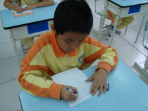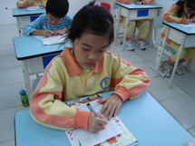 在聂老师如播音员般动听的声音中,同学们奋笔疾书,进入了一个忘我的境界――再没有窃窃私语,也没有东张西望,耳朵里除了词语还是词语,脑海中只有不停跳跃的字词,心中则是词语背后美丽的画面――充满了成功的乐趣与超越自我的兴奋!