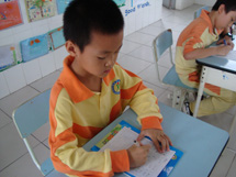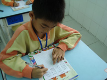 第一次听写这么多词语,孩子们可认真啦!每个人心中都有一个信念:不但要在坐姿、写姿方面胜过其它同学,更要在词语的准确度及书写上名列前茅!