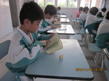 随着老师的一声令下,教室里顿时鸦雀无声。一张张小脸神情专注,一双双小手动作娴熟,只听到轻轻的翻阅声。一分钟、五分钟、十分钟……第一个同学完成了,他高高举着手偷偷地笑了。其他同学看见了,赶紧埋头继续加油!经过十五分钟的角逐,有的同学胜券在握,满眼含笑;有的同学微微叹息,深表遗憾……