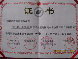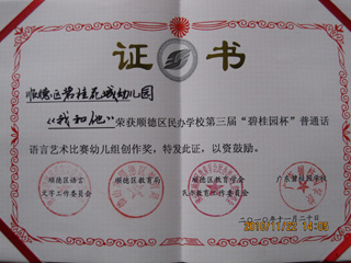 2010年11月20日上午,由顺德区教育局、顺德区语言文字工作委员会和顺德区教育学会民办教育工作委员会共同组织的第三届“碧桂园杯”普通话语言艺术比赛,在广东碧桂园IB国际学校成功举行。