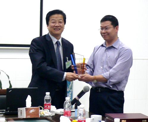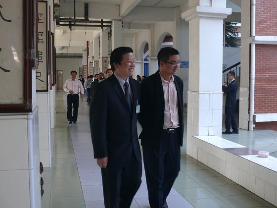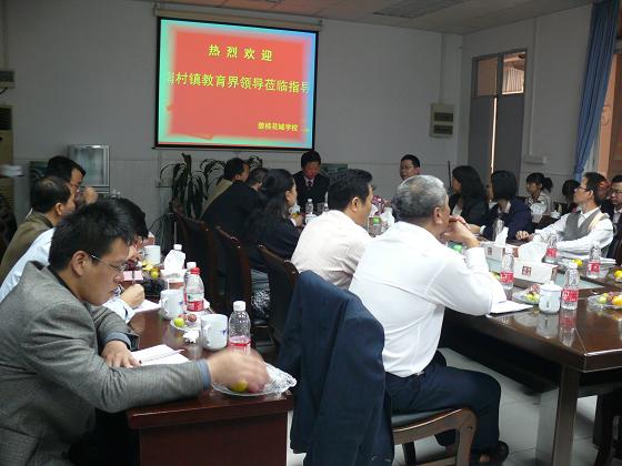 在此后进行的一个多小时交流活动中,卢主任首先对我校在环境建设、教育教学管理、特色教育成果等方面取得的成绩大加赞赏,用他的话说就是:“机制灵活、特色鲜明、成绩显著”。随后,我校贺小勇校长作了题为《校本教研与有效教学》的交流报告。报告融进了贺校长对江苏洋思、东庐两所名校办学理念、管理手段以及校本研究的深刻理解,结合我校在校本研究以及有效课堂创建等方面的一些做法,作了深入浅出、妙趣横生的演说。贺校长的演说,课件精美,涉及面广,思路清晰,思考深刻,中心突出。阐述主要围绕“什么样的课才是好课”、“有效教学的主体特征”、“效益、效能、效率在有效教学中的具体表现”、“校本研究与有效教学的关系”、“教师反思与有效教学的关系”、“优质学校的打造”等方面,表述生动活泼,又不失深度,融理论积淀与实践思考于一炉,整个报告过程笑声不断,掌声连连。