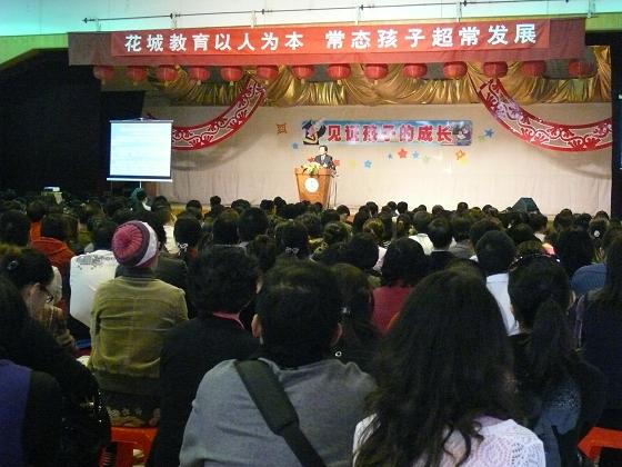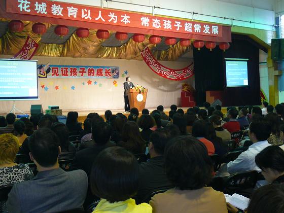 2010年11月26日下午,我校召开了主题为“见证孩子的成长” 家长会暨教学开放日活动。下午四点整,贺校长在综合馆为来宾和家长作了一场题为《沟通与交流》的专题报告,会场座无虚席,有近千名家长和来宾聆听了校长报告。