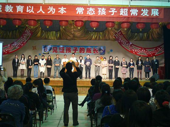 第二:教学工作。贺校长将我校本学期开展的教学工作归纳为五个方面,①完善制度建设,狠抓常规管理不放松;②深化教研教改,狠抓质量提升不放松;③创设特色课程,狠抓特长培养不放松;④重视学科竞赛,狠抓品牌打造不放松;⑤尊重个体差异,狠抓课后辅导不放松。贺校长还与大家一起分享了佛山电视台制作的《校长专访》视频。事实上,我校取得的“金蝶奖”金奖,英语竞赛第一名,电脑说课第一名,区“碧桂园杯”普通话比赛一等奖、区小学生作文一等奖等等无不证实了我校的教育教学工作落到了实处,并卓有成效。
