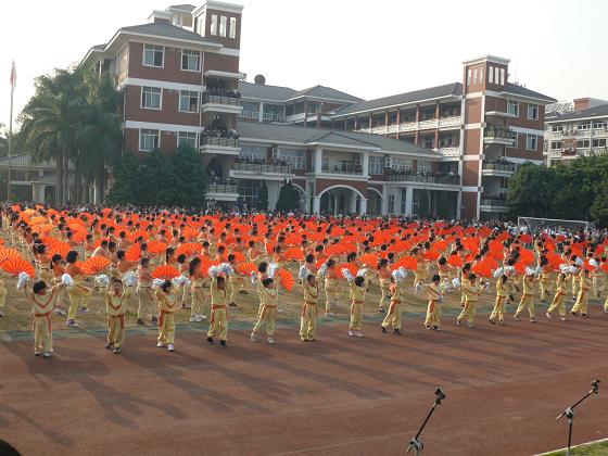 体育组老师以及班主任、跟班老师等一段时间来的辛苦努力,给我们带来了一场撼人心魄的视觉盛宴。几百人同时展示的太极扇,一片红色耀人眼目,配以豪迈壮阔的音乐,无论对人的听觉还是视觉,都产生了强烈的震撼效果。楼上楼下以及操场上的观赏者,无不屏息凝视,之后赞不绝口。在随后与认识或不认识的来宾的交流中,我们不止一次地听到了“了不起”、“太精彩了”等赞誉之词。感谢所有老师的支持,特别是体育组老师的付出!