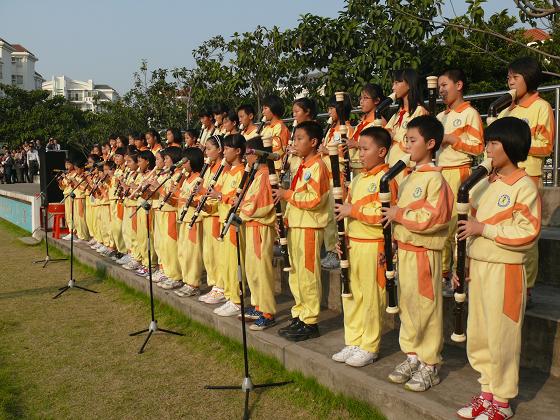 醒狮表演和威风锣鼓拉开了大课间序幕,紧接着校竖笛队的孩子们带来了一曲欢快的《花好月圆》,孩子们的自信而熟练的吹奏,让在场的家长和来宾不仅陶醉在欢快的音乐中,还跟着音乐的节奏情不自禁地打起了节拍。动感十足的少林棍更是引来了众多家长上前拍摄,精彩的棍术套路和着那首久别重逢的老歌《世间始终你好》,不仅带给了观众们视觉上的冲击更带来了精神上的许多感慨和回味。