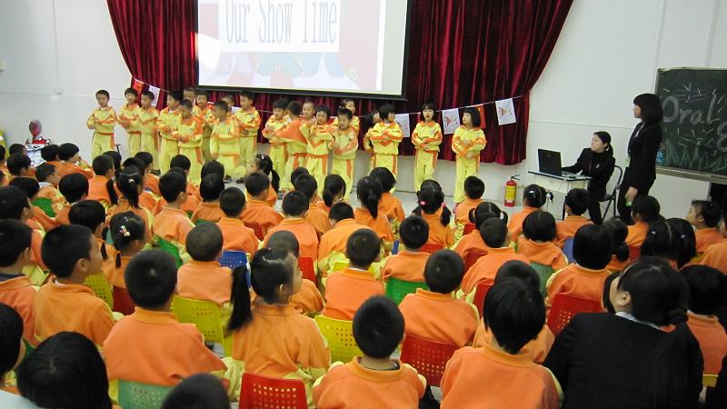 11月26日周五下午,孩子们非常兴奋、激动。因为期盼已久的 “Oral English Show” 终于到来了!乘着广州亚运会的契机,1―3年级的全体学生都聚集在阶梯教室里,用自己的努力和认真,展示自己的英语亚运知识。