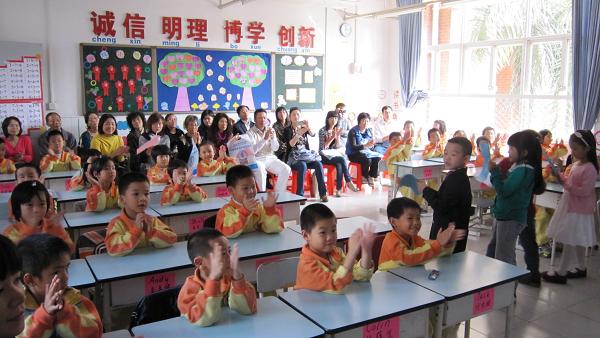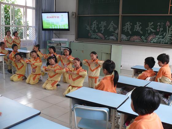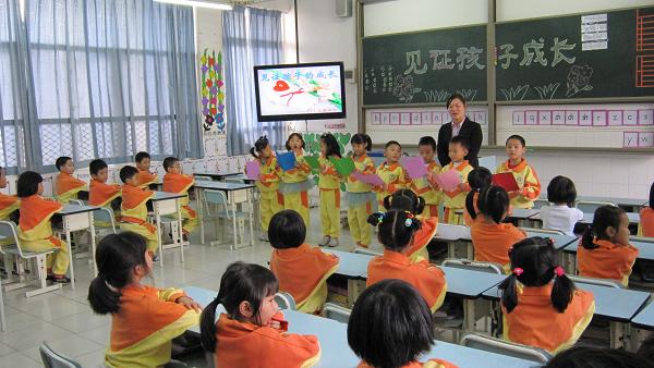 二(1)和一(1)是我校的英语班级。本次主题班会,在老师的引领下,全程用英语开展活动。孩子们可爱的笑脸,标准的口语表达,丰富的词汇量和自信大方的表现,都给在场家长和来宾留下了深刻的印象。不少观众翘起大拇指说:“英语班级,果然名不虚传!”(文\黄洪)