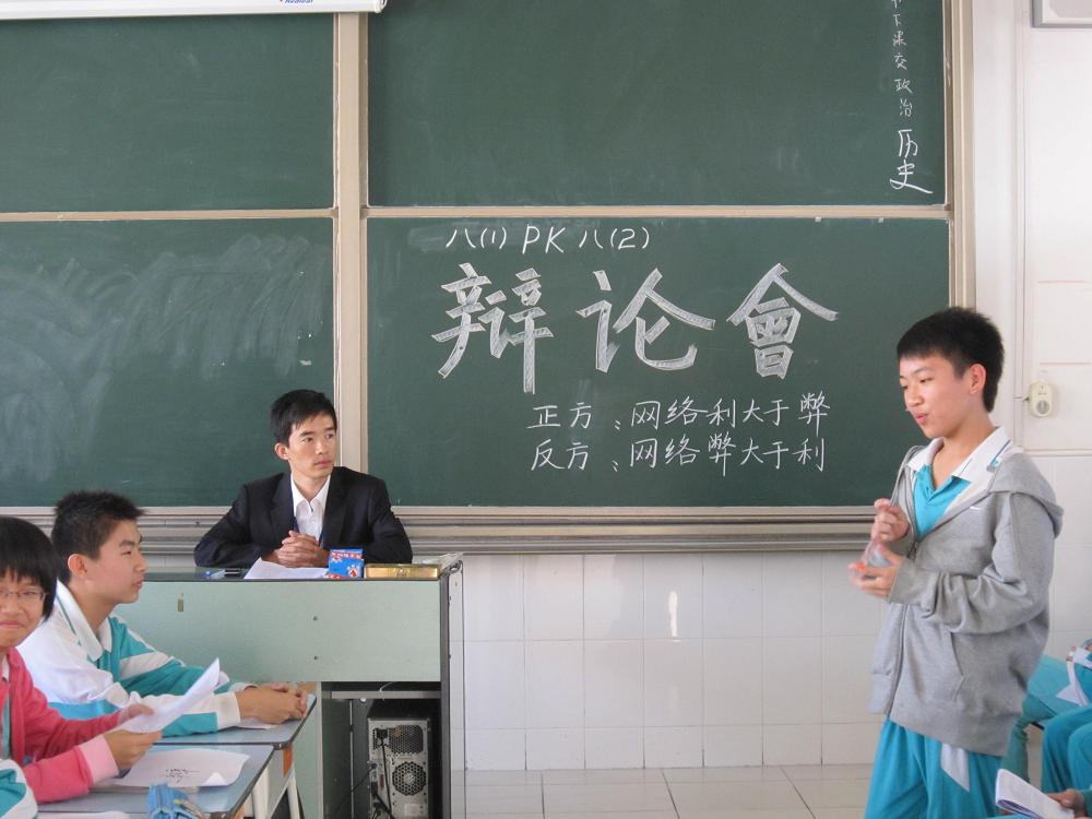 本次辩论赛的辩题为“中学生上网的利与弊”,将由双方四位辩手分别从正反两方进行辩论。主持人宣布辩论正式开始,首先双方一辩开篇立论,然后对方二辩彼此反驳,双方二辩灵活的思维和逻辑,不时赢得场下阵阵掌声。而到了比赛的第四环节自由辩论阶段,可以说是本场辩论的高潮。面对对方的引经据典,旁征博引,辩手们都巧用各种例子,一次一次化险为夷,个个击破对手的观点。到了比赛的最后阶段,双方四辩流利的具有高度概括性的陈述为本场辩论画上完美的句号。
