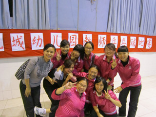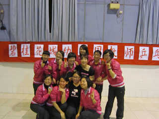 12月13日傍晚6点45分,碧桂花城幼儿园的全体教师在碧桂花城学校综合馆参加了由碧桂花城幼儿园工会举办的“超级无敌”乒乓球活动。这次活动是体现乒乓球和英语综合实力的比赛。比赛分为英语老师专业组和幼师非专业组。非专业组的题目有:讲述“水果、颜色、身体部位、运动项目”等单词;专业组的题目有“小朋友最喜欢的故事、如何表扬孩子”等英语表达内容。