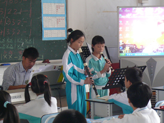 接下来,我们再来感受何国基老师的音乐课《小小少年》,课的一开始教师通过讲故事的形式激发学生学习的兴趣,接着领唱歌曲,把学生直接领入到歌曲所表达的音乐情境中,通过师生的共同演唱、独唱来表现歌曲欢乐地情绪和所描绘的音乐形象,让学生感受不同演唱形式,通过师生情感的体验把课堂气氛推入高潮,让学生在美的旋律中感受音乐。学生通过运用竖笛的个体自学、集体互学,能对音准节奏的准确性、旋律的掌握上起到更进一步的作用,同时也加强了他们识谱的能力以及手指的协调性,目的在于把时间和空间还给了学生,让学生主动参与课堂学习,放手让学生自主的学习,使他们真正成为学习的主人。本节课中“自主、探究、体验、合作”在整堂课中贯穿始终,通过用教材来培养学生养成乐观向上,热爱生活的美好情操。
