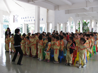 快乐与自豪写在了每个孩子的脸上。他们用独特的方式演绎了一首首英语歌曲,唱出了自己的喜悦和自信。在亚运项目竞猜环节中,每个孩子都高高举起小手,大声流利地用英语说出各项运动名称。他们逗人的表情,逼真的模拟,富有创意的表演,博得了阵阵热烈的掌声。