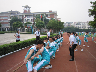 星期四这天,我校举行了本学期初一第一项体育赛事――拔河。
