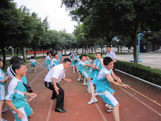 这一招果然奏效,对手完全没有料到我们的突然“变阵”,有些手忙脚乱。但他们很快调整了状态,就在双方僵持不下的时候,余老师大声喊道:“同学们,加油,千万别放弃!”一听这话,所有同学都像杀红了眼的士兵一样,一边拼命拉,一边凶猛的叫喊,对方被我们的气势压倒。第二个回合我们赢了。