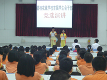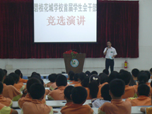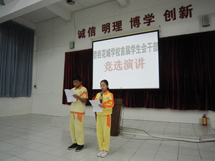 10月11日下午四点,我校首届学生会干部竞选演讲在阶梯教室隆重举行,共有14位同学参加演讲,产生了五位部长。六、七、八年级全体师生参加了此次大会。