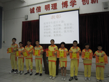 大会还对前段时间在学生值日工作中作出贡献的同学进行了表彰,团支部书记刘志伟老师公布了优秀学生干部名单,他们分别是:彭丽丹、高俊毓、朱家良、岑伟松、梁芷颖、潘钰婷、罗海棋、林嘉乐、张天行、何雯丽、朱凯瑶。希望更多的同学向他们学习。