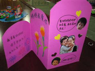 各班的老师和孩子们纷纷利用各种材料,精雕细琢,力求能将自己对母亲的深厚情感融入小小的卡片之中。“十分爱”、“爱的小屋”、“月亮湾”、“幸福的一家”、“最美的花献给妈妈”等等,是老师和孩子们为自己的作品精心选取的名字。从这些卡片的名字中,我们就能感受到其中浓浓的爱意。5月4日晚上,全园老师齐聚一堂,相互学习,并且评选出了自己心目中最美的贺卡。