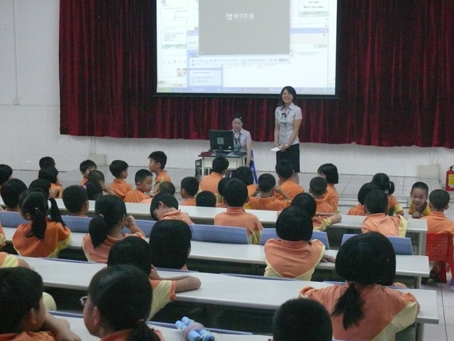 快乐的时间总是短暂的,在小朋友们遗憾的“See you!”声中,在同学们“Our school will shine today.”的歌声中,英语秀结束了。我们下次再见吧!
