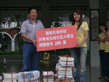 6月8日下午,碧桂花城学校牵手广东狮子会粤亮服务队向玉树灾区捐赠图书1000余册,并举行了捐赠仪式。