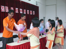 毕业生代表黄采炀同学在讲话中追忆了同学们三年初中生活的多姿多彩,兴奋地讲述了在我校的成功经历,代表全体同学对母校的培养表示由衷的感谢!为表达对老师们的谢意,10位学生代表向全体九年级老师献了鲜花,表达他们的感恩之心、感激之情、祝福之意。