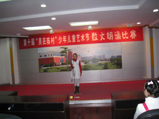 在第十届“美在陈村”少年儿童艺术节“散文朗诵”比赛中,我校八年级的郑雨柔同学和六年级的蓝雨田同学凭借标准的发音,流畅的表达,饱满的精神状态,大方得体的肢体语言打动了在场的听众,分别获得了中学组一等奖和小学组二等奖,在此向两位同学表示祝贺!