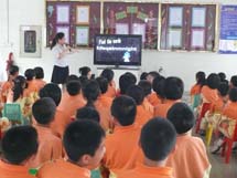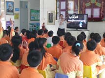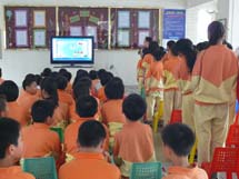 首先进行的是Round 1:Sharp Eyes. 本环节是看谁能够从一行或两行打乱顺序的字母中快速找出尽可能多的单词或句子。本环节真的让我们见识了孩子们对字母,单词和英语句子的敏感度之高!接下来是Round 2:Guess? Guess? Guess? 当电视屏幕上出现了已被遮住了大半部分的图片时,只见孩子们海阔天空的猜了起来,把所学的词汇差不多都梳理了个遍。接下来Round 3:Find differences. 是见证同学们眼力和英语口语的时刻。当两幅看上去很像的图片一出现时,大约五秒钟后就见一双双小手举得老高,嘴里还迫不及待的喊着: “Miss Feng, let me try!”要知道找不同可是他们的专利。最具挑战的是Round 4:IQ-Test.本环节相当于中文的脑筋急转弯,这可是英文版的哦。孩子们既要看懂题目,脑袋还要转的快。这一环节答对题目的那可是能得到大奖品呢!看那得到礼物的同学脸上流露出的喜悦神情,可真招人羡慕呀!Round 5:Form Sentences.这一环节老师真的没办法叫单个人起来回答,因为同学们个个手都举得老高,只好来个集体回答。热烈的现场气氛也吸引了很多来接孩子的家长的眼球。哦,原来我们的英语秀时间已经到了。孩子们说还没玩够,还要show一下他们的歌喉。就这样,英语秀在孩子们有节奏的说唱中结束了。