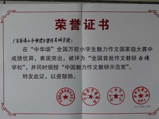 阳春三月,春暖花开,在这个美丽的季节里,我们再次闻到了“作文特色之花”飘来的芳香。在“中华颂”全国万校小学生魅力作文国家级大赛中,我校成绩优异,表现突出,被评为“全国首批作文教研百强学校”。共有160篇参赛作品获奖,其中郭晓婷、陈秀雯、洪秀贤、余育骏获得特等奖,卢敏婷、叶栩童等46名同学获得一等奖,梁俊峰、蔡雨桐等56名同学获得二等奖,廖梓灵、区炜荧等25名同学获得三等奖,吴子浩、陈书奇等29名同学获得优秀奖。在此向获奖同学表示祝贺,也希望同学们再接再厉,争取在今后的各类作文竞赛中取得更好的成绩,让我们的“作文特色之花”越开越艳!