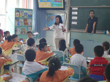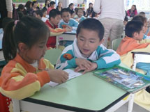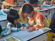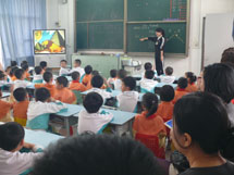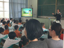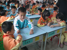 “弟子规,泛爱众……”,随着幼儿园小朋友天真稚气的《弟子规》的唱诵,语文课堂拉开了序幕。借助着精美生动的课件,小学语文老师们引领着孩子们朗读课文、学习生字….小老师带读、开火车认字、生字开花、摘生字果子……形式多样的课堂活动让小朋友们的一双双小手举起来了。大孩子教小孩子有板有眼,小朋友学小学生有模有样……数学老师精心设计的《找数字规律》和《认识七巧板》贴近孩子的认知和生活,大大地激发了孩子们的学习兴趣,最后孩子们结对子共同完成的一份数学作品,还被当作纪念物送给小朋友呢!英语课堂上,自然有趣的情景创设配上美妙动听的儿歌、表演、单词认读,让所有的孩子都动起来了,那憨态十足的舞蹈令人忍俊不禁,那流畅自信的口语令人赞叹不已!……