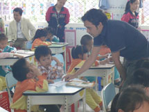 最吸引眼球的是幼儿园国际班和一年级英语班衔接的全英课堂:外教Mr.Kirwen以一首吉他弹奏Yellow Sumerine把所有的孩子都征服了,孩子们一路开心跟随,先跟学单词shouted, hurt, stones……再听他讲英文故事《A boy and frogs》,听的过程中学习纯正的英语口语。随后孩子们在游戏中争先恐后地参与问答、认读,整个课堂轻松愉悦、风趣活跃。小学英语班孩子们自信大方的课堂表现,超乎平常的单词量,良好的听说能力,果然不同凡响!看着孩子们出色的学习状态,许多幼儿园的家长纷纷表示,通过观看现场授课,更坚定了让自己的孩子直升小学英语班的信念!