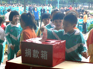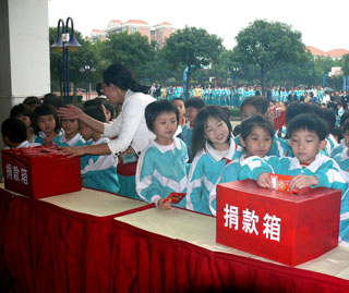 一方有难,八方支援。面对西南灾区的现状,碧桂花城学校党员教师带头捐款,团支部和少先队大队部特发出倡议:响应团中央的号召,积极行动,鼓励团员每人捐款2元或以上,少先队员每人捐款1元或以上。倡议书一发,同学们积极响应,纷纷拿出自己的压岁钱,捐献给灾区,5元、10元、50元、100元……无论多少,都代表了孩子们的一份爱心。