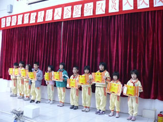 2010年4月16日,碧桂花城学校隆重举行了低年级示范生表彰大会暨新队员入队仪式。同学们激情高涨,仪式在一片热烈的掌声中拉开了颁奖的序幕。低年级近三百名学生,通过自己坚持不懈的努力分别获得了“文明礼貌”、“课堂常规”、“孝敬父母”等荣誉称号。我们相信获奖的学生一定会“胜不骄”,继续取得更优异的成绩,没获奖的学生,也能“败不馁”,积极的争做示范生。