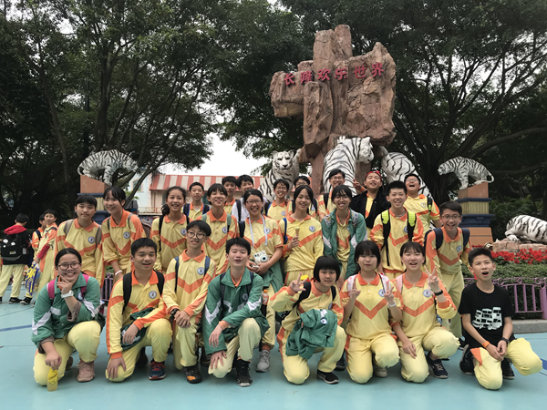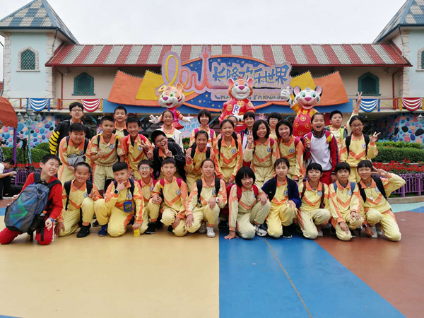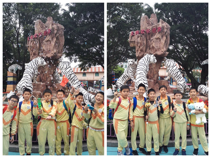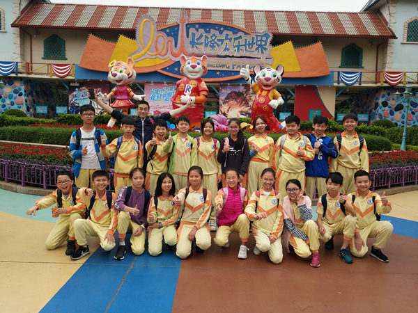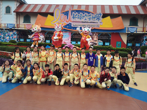 早上九点,5—8年级的师生在学校大门前集合,各班队形整齐,充满活力。此行的目的是充满乐趣的“长隆欢乐世界”。