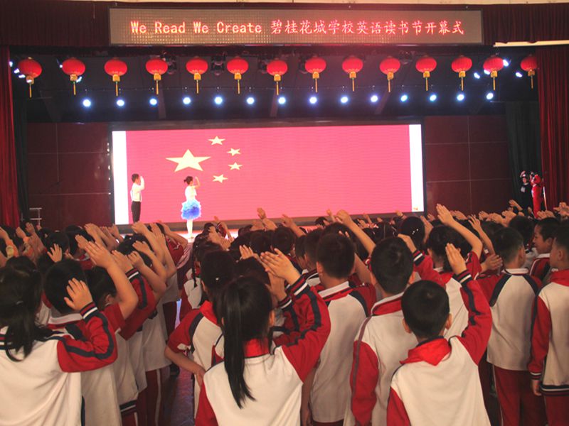 为了提高我校小学生英语阅读能力、培养良好的阅读习惯,为学生提供展示才能的舞台,丰富校园文化生活,博实乐碧桂花城学校结合“本道教育”办学理念,开展英语读书节活动,于4月8日上午,举行了隆重的升国旗暨英语读书节开幕仪式。