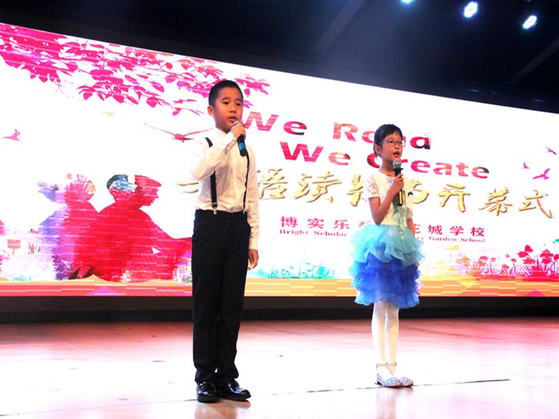 开幕式上,低年级首先进行了韵文表演,接着师生代表携手亮相,一起朗诵英文美文,让全校师生沉浸在优美的韵律当中;随后,贺总监在开幕式上致辞并宣布英语读书节开幕;最后,全体师生跟着主持人一起宣誓,将仪式推向了一个又一个高潮。接下来,英语读书节将会根据不同年级的实际情况,创新开展系列活动,如一年级开展韵文朗诵活动,二年级开展趣味配音比赛活动,三年级开展英语歌谣比赛等活动。