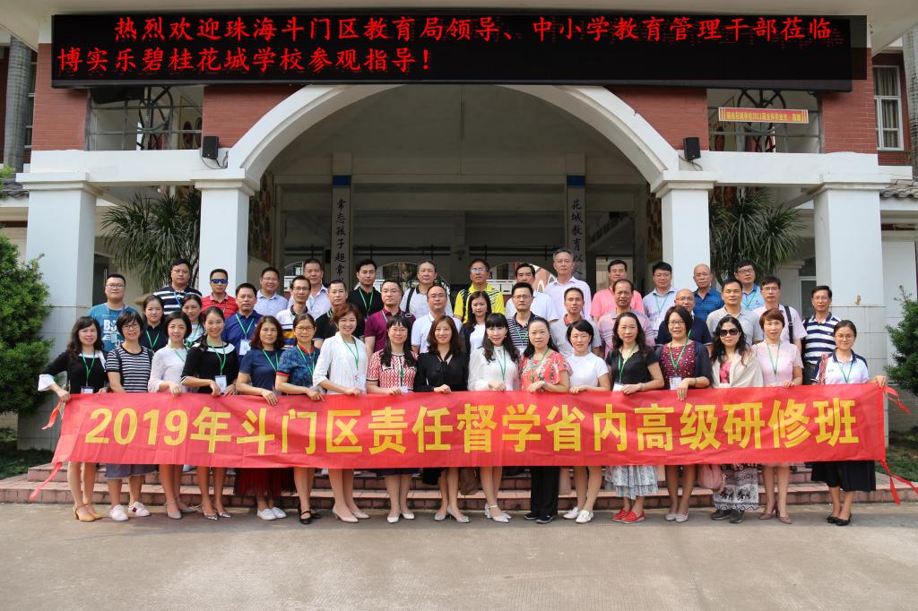 4月10日下午,珠海市斗门区50多位教育局领导、中小学教育管理干部将莅临我校交流学习。田桂花副校长带领学校中层干部热情地接待了来宾。