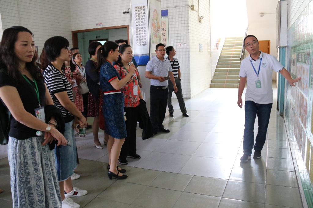 随后由赵定国副校长带领代表团参观了我校的环境文化,代表团对校园环境的整洁大气、格调高雅赞叹不已,特别是荣誉背景墙、读书漂流瓶、书法室以及UOI长廊给代表团成员们留下了深刻的印象。参观正值课间休息时间,花城学子青春朝气、礼貌迎客的精神风貌让来宾啧啧称道。