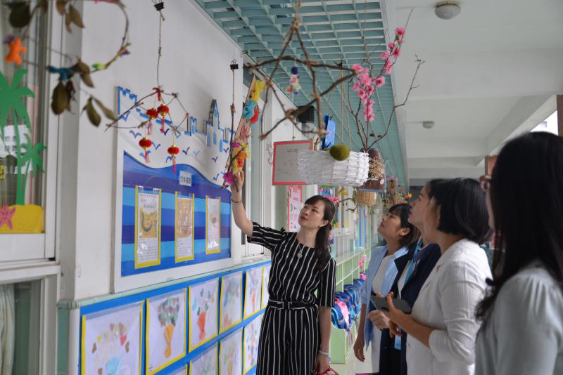 随后,督导小组及陪同人员一起视察了园舍的各处。在视察过程中,梁园长向督学介绍了我园花卉资源的运用、阳光体育及其器械的摆放、6S在我园的开展、国际班探究活动等特色工作。