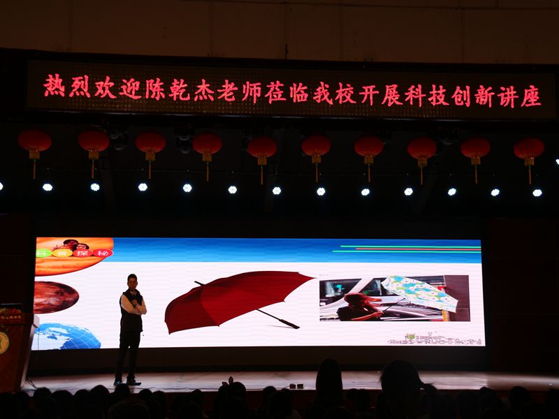 为了拓展学生的思维,提高孩子们科技创新的能力,2019年5月7日下午,我校邀请了“广东省优秀科技指导员”陈乾杰老师,在综合馆为我校三至五年级学生开展了一场精彩的科技创新讲座。