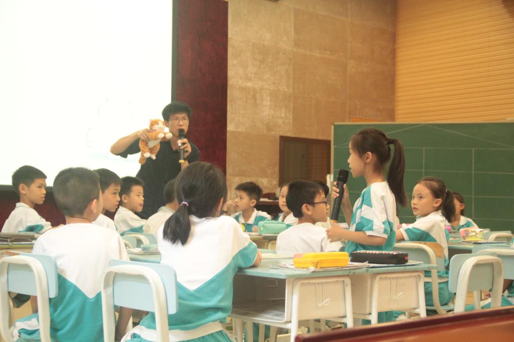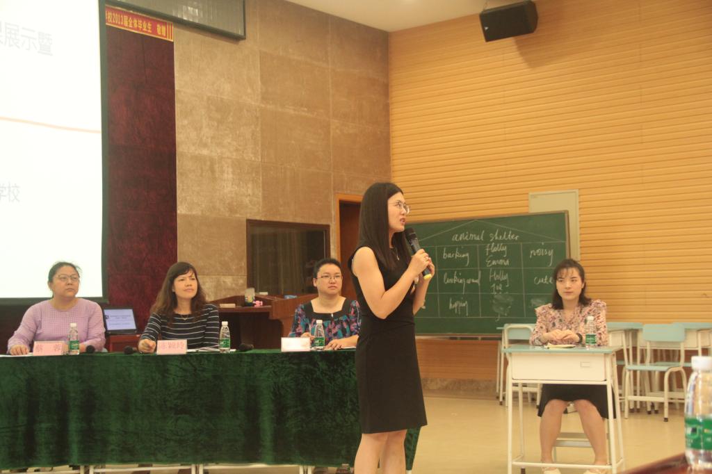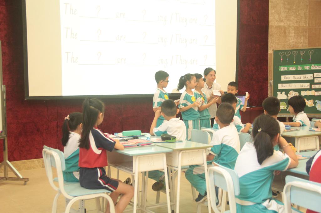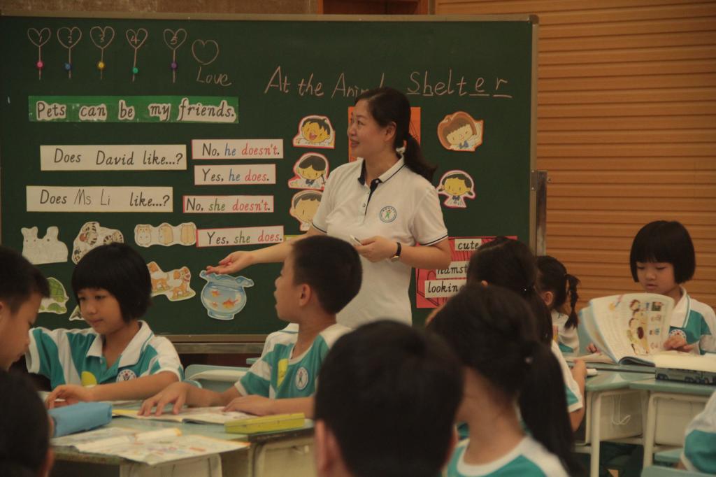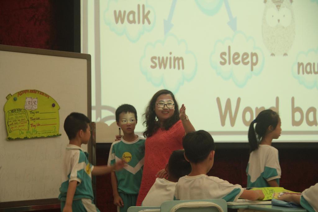 参赛的教师都是由集团各校选拔出来的学科精英,授课内容统一是小学英语牛津版2B Unit 6 Pets can be my friends.我校担任此次优质课大赛的授课老师是杨怡如老师。杨老师在热情洋溢的师生问候之后,巧妙地以卡通人物David引出了主题——Pets can be good friends.她在课上全面展示了自己扎实的教学基本功和生动的现场表现力。充实的课堂设计,务实的教学风格,丰实的教学效果,让杨老师的课堂精彩纷呈。她的出色表现,充分体现出碧桂花城学校教师锐意进取的积极风貌,同时也体现出英语教研组通力合作的团队精神。